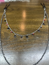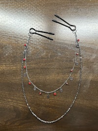 Unique Hand Made, delicate Stainless Steel nipple clamps with gun metal chain and black/red skull charms